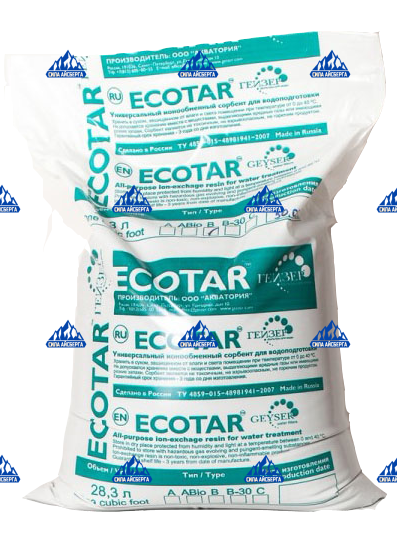 «Экотар» – смесь катионообменных смол различного гранулометрического состава, крупнопористой анионообменной смолы и инертной смолы. С помощью загрузки «Экотар» из воды могут удаляться растворенное железо и марганец, соли жесткости, природные органические соединения (гуминовые, фульвокислоты и их соли), железоорганические соединения, тяжелые металлы, ионы аммония, перманганатная окисляемость и цветность при этом снижаются. Для регенерации загрузки используется раствор поваренной соли. Используется  в системах очистки воды для коттеджей, промышленных фильтрах для удаления железа (обезжелезивания), умягчения воды, деминерализации воды.